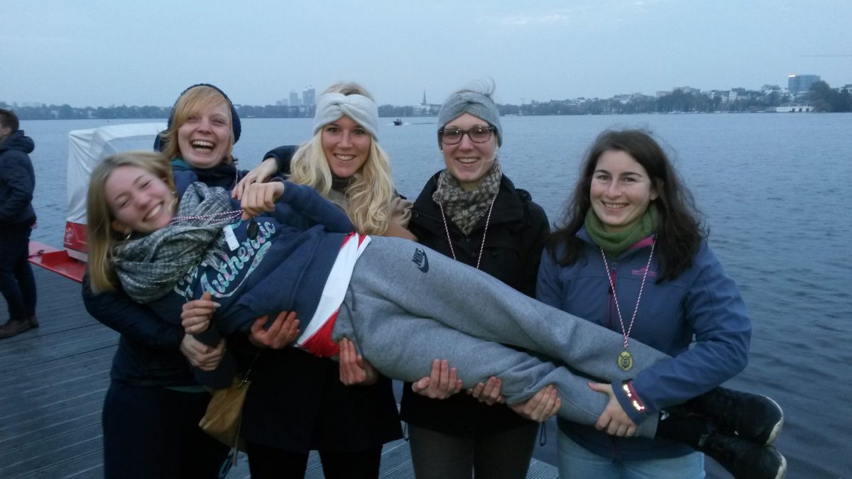 Einen tollen Coup landeten die jungen Damen am Sonntag beim Faricup 2017 in Hamburg. In der Klasse der A-Seniorinnen fuhren Ricarda, Nicole, Dörte und Theresa mit Steuerfrau Iva der Konkurrenz im Doppelvierer auf und davon. In ihrer Hansa/BSC-Renngemeinschaft gewannen sie ihr Rennen mit deutlichem Vorsprung. „Wir hatten schon während des Rennens ein gutes Gefühl, aber dass wir dann so weit vor den anderen waren, ist einfach nur klasse!“, jubelten die Damen hinterher unisono. Grund genug, die erruderten Radaddelchen gebührend zu feiern.
