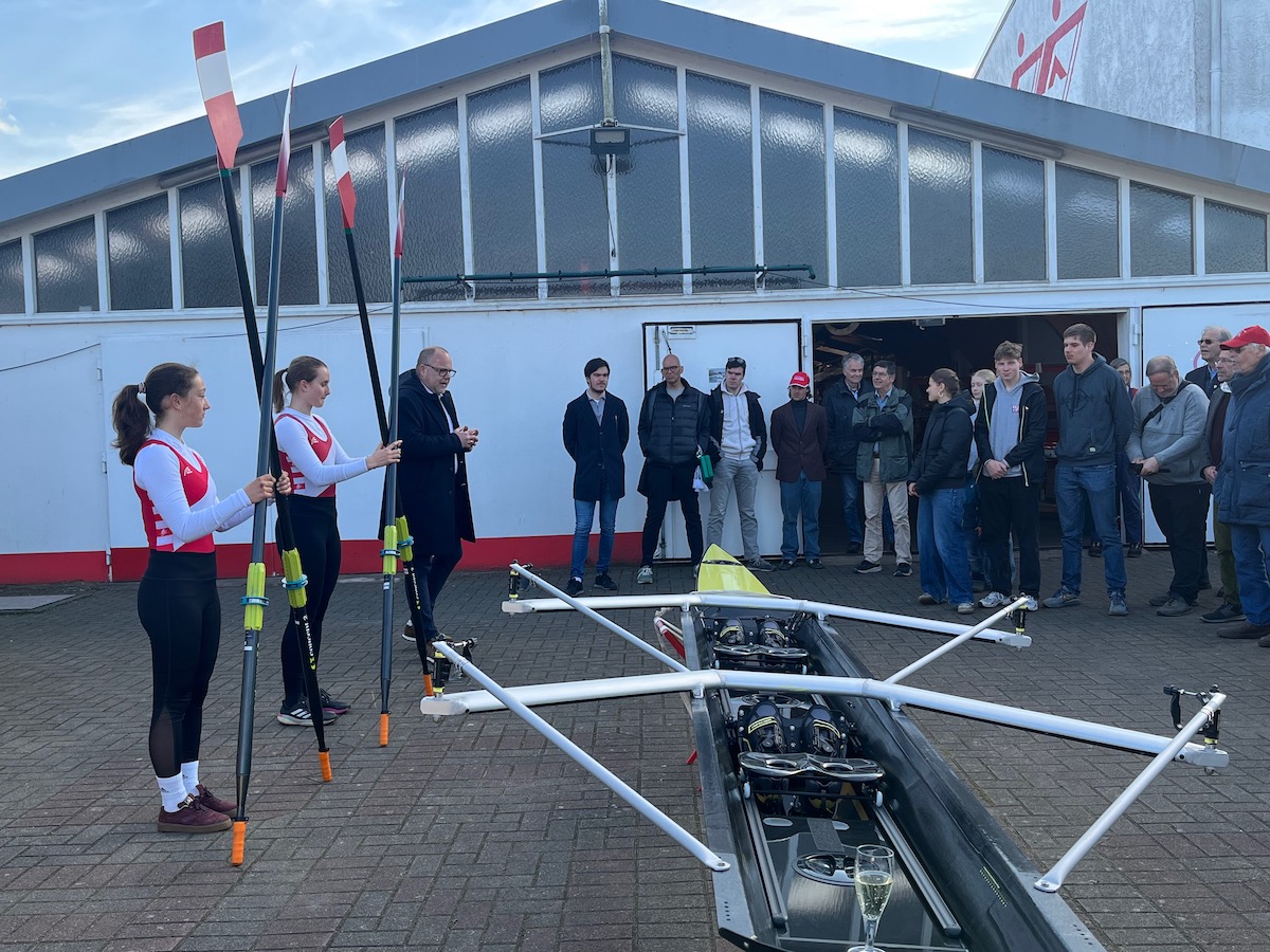 Am 4. April konnten wir einen neuen Doppelzweier taufen: Strom aufwärts. Dies war Dank der großzügigen Unterstützung der Stiftung meistro gGmbH möglich. meistro ist ein Energiedienstleister mit Sitz in Ingolstadt. CEO & Geschäftsführer Niels Keunecke taufte das Boot auf den Namen „Strom aufwärts“. Anschließend ruderten Sofia und Leonora eine kleine erste Runde auf der Weser.